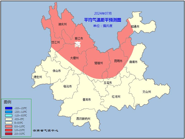 氣溫。全省大部地區(qū)接近常年同期到偏高,其中迪慶州、怒江州、麗江市、大理州、楚雄州、昆明市、曲靖市北部、昭通市南部偏高0.5℃~1.0℃。(圖2)