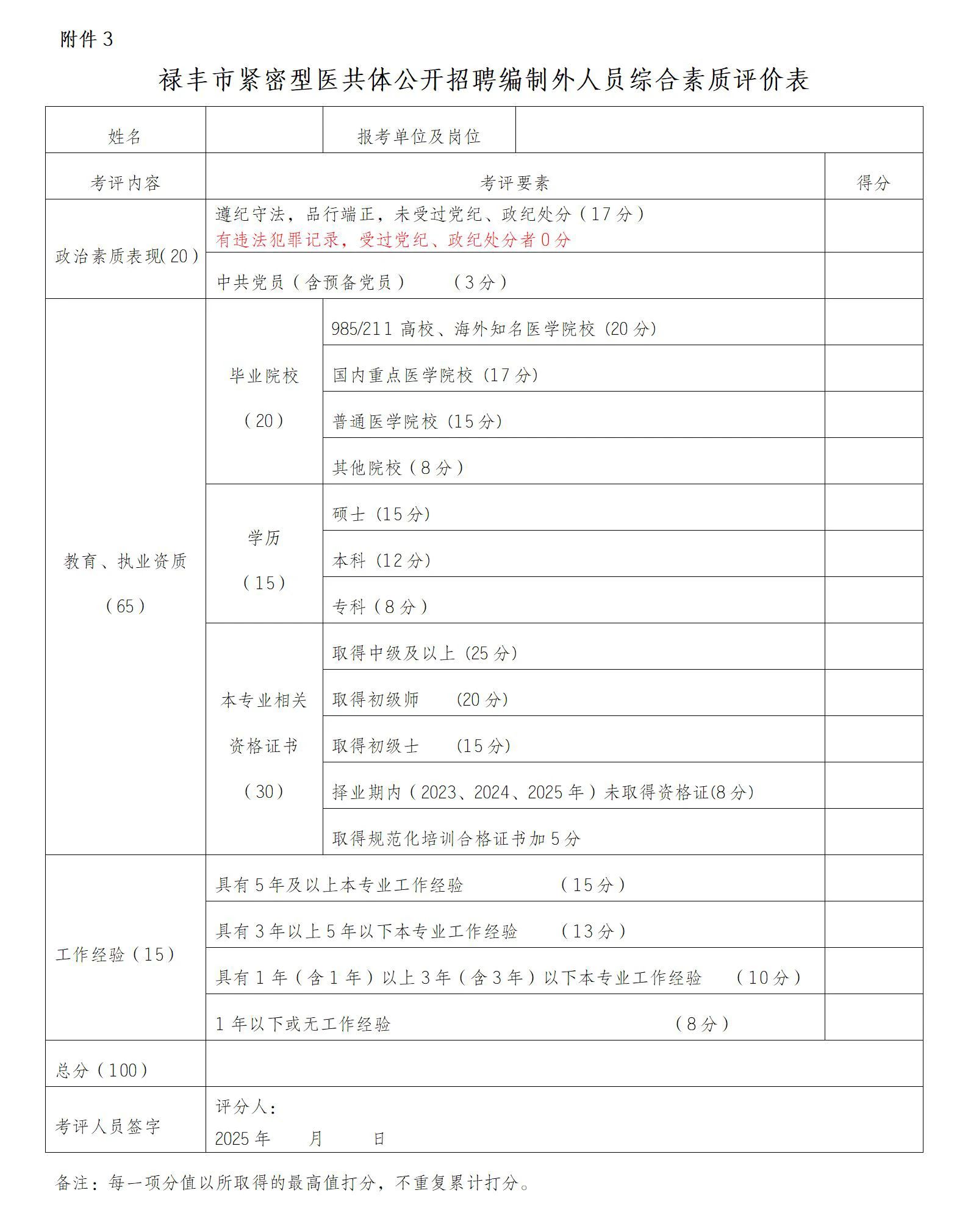 3.祿豐市緊密型醫(yī)共體公開招聘編制外人員綜合素質(zhì)評(píng)價(jià)表