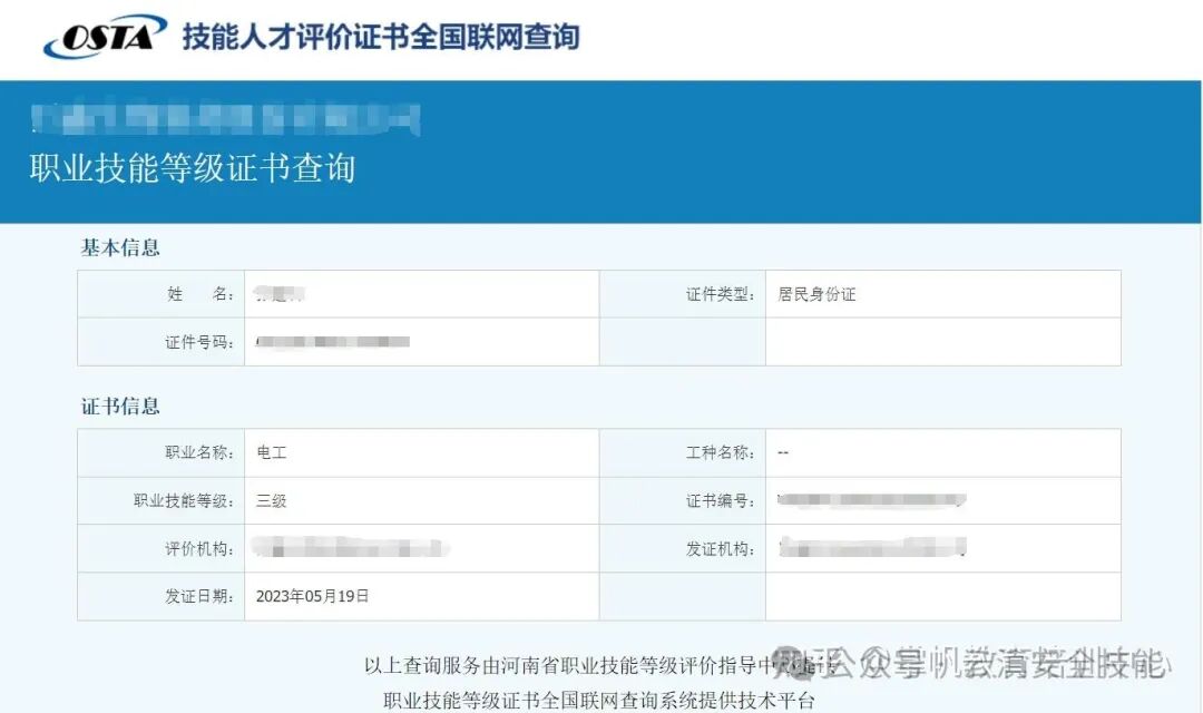 所發(fā)證書可在技能人才評價證書全國聯(lián)網(wǎng)查詢,查詢網(wǎng)址:http://jndj.osta.org.cn(評價機(jī)構(gòu)可在國家技能人才評價信息服務(wù)平臺查詢,網(wǎng)址:http://pjjg.osta.org.cn)。